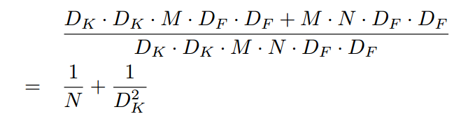 可以看出其参数量是M∗K∗K,而计算量(乘加次数)是M∗DF∗DF∗K∗K。