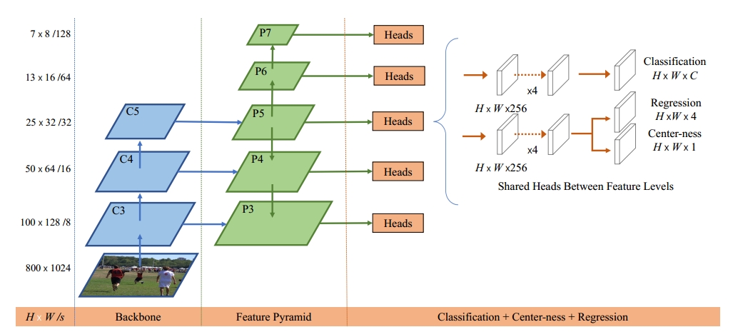 FCOS 结构和 retinanet 几乎相同,但是有细微差别,下面会细说。