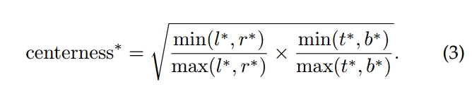 对于任何一个点,其 centerness 的 target 值通过如下公式计算: