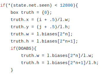 truth 是已经编码后 xywh 分支的 target 了,可以发现此时 xy label 是假设 gt bbox 中心一定在网格中心,而 wh label 就是 anchor(这个 l.biases 就是对原图尺度的 anchor 除以 stride 后变成特征图尺度的值)除以特征图大小(典型是 13),可以简单认为在每个 gt bbox 所属网格内会附加一个 gt bbox 中心点一定在网格,但是 wh 会依据匹配情况改变的 gt bbox,对于任何一个正样本 anchor,其 xy label 是始终不变的,而 wh label 会随着所属 gt bbox 的匹配情况而改变,也就是说这个 loss 的目的是希望忽略 xy 的学习,而侧重于将预测 wh 学习出 anchor 的形状,可能有助于后面的收敛。但是不可忽略的一个点是:由于这个 loss 和图示下一行的坐标 loss 是一起学习的,就会出现回归分支预测 wh 的含义出现冲突,一个 loss 希望其学习 anchor 的 shape,一个 loss 希望其学习 gt bbox 相对 anchor 的缩放,为了避免这个现象,作者实际上把 1t<128000 这个 loss 仅仅在前期用,并且故意设置权重值比较低(典型值是 0.01)。目前第三方复现都没有考虑这个 loss,可能作用确实很小吧。