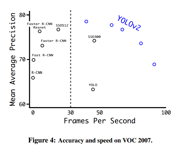 通过这些改进,大幅提升了 yolov1 的定位准确度和召回率,同时速度也是极快,如下图所示: