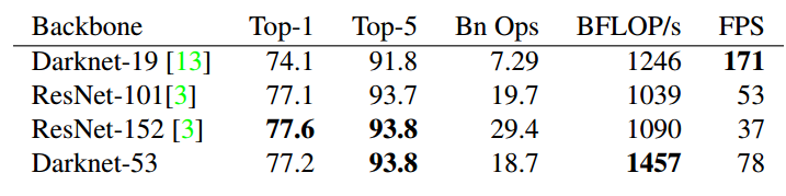 基于主流 ResNet 残差设计思想提出了新的骨架网络 darknet53