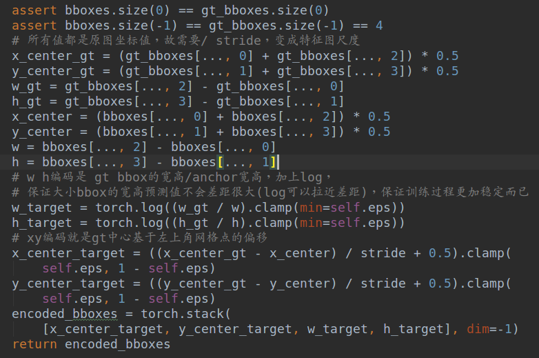 这个规则和 yolov2 完全相同。正样本的 xy 预测值是相对当前网格左上角的偏移,而 wh 预测值是 gt bbox 的 wh 除以 anchor 的 wh(注意 wh 是在特征图尺度算还是原图尺度算是一样的,解码还原时候注意下就行),然后取 log 得到。
