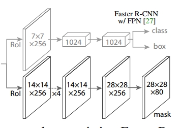 对(batchxn,256,14,14)的特征图输入到全卷积的 mask head 中,输出(batchxn,num_class,14,14)输出