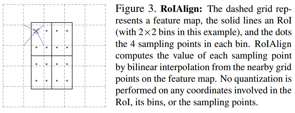 为解决特征图与原始图像上的 RoI 不对准的问题,提出了 ROI Align 模块